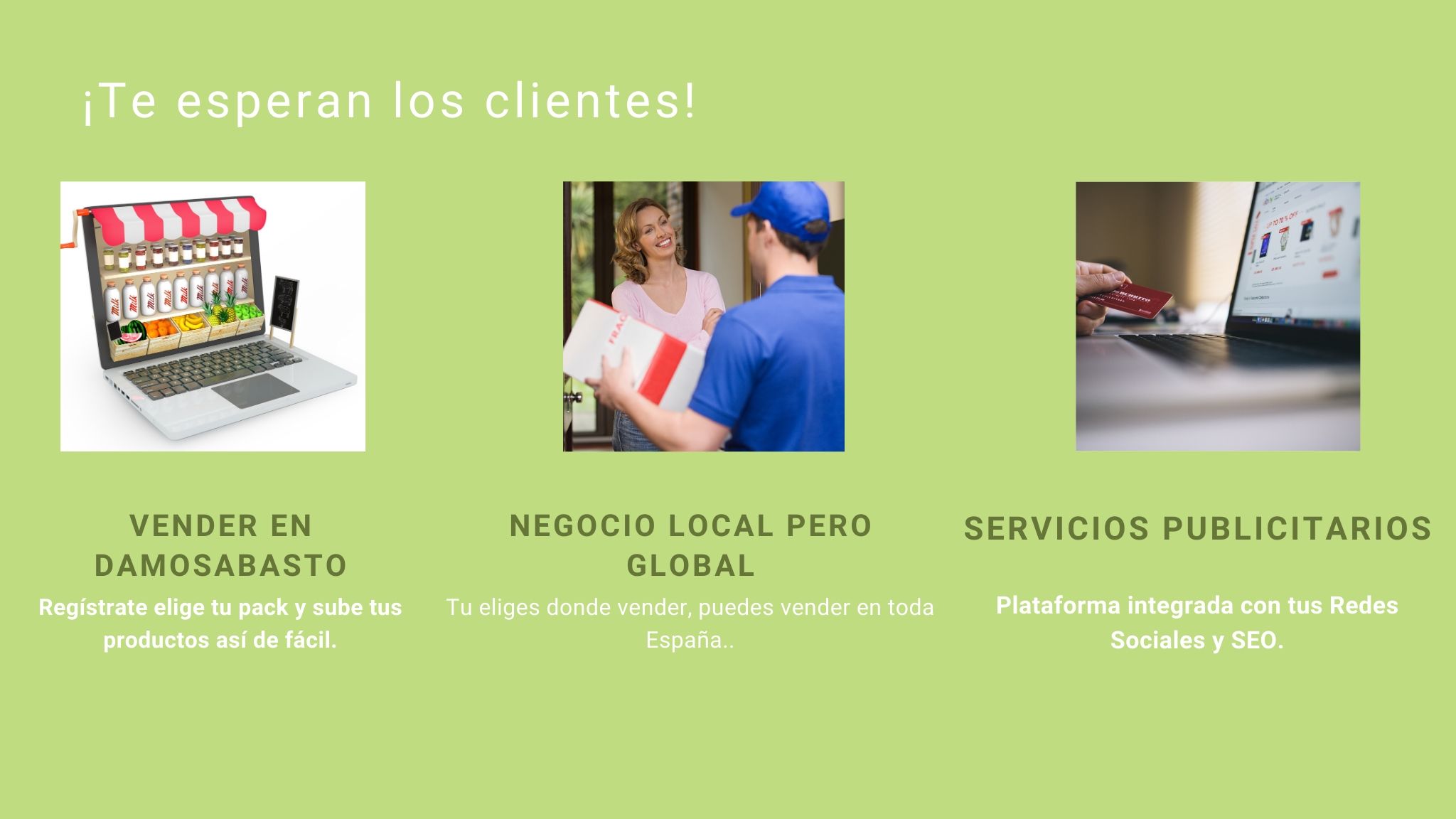 Con Damosabasto.es das a conocer tu negocio a miles de clientes compradores de productos de todo tipo y categorías (electrónica, moda, alimentación, deportes, etc). Aprovecha el tráfico de la plataforma y gana nuevos clientes a través de un nuevo canal.
